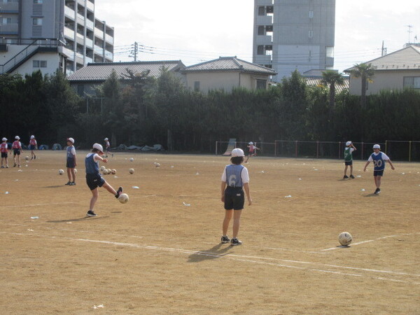 少しずつ、友達の場所へボールを狙って蹴れるようになってきました。