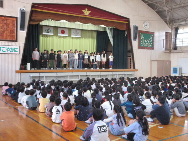 各委員会の委員長、4~6年生の代表委員がそれぞれの想いを声高に伝えました。びっくりするくらい立派な姿におもわず笑みがこぼれました。