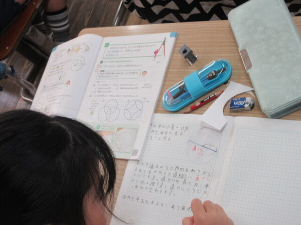 図鑑を見て文章を書いたり、コンパスを使って円を書いたり、ちょっとずつ学習が高度になっています。