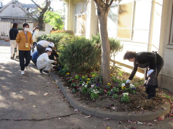 地域の方々、保護者、児童が協力して、学校をお花でいっぱいにしてくれました。ありがとうございました。