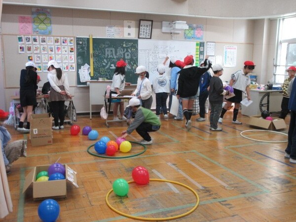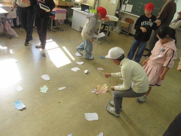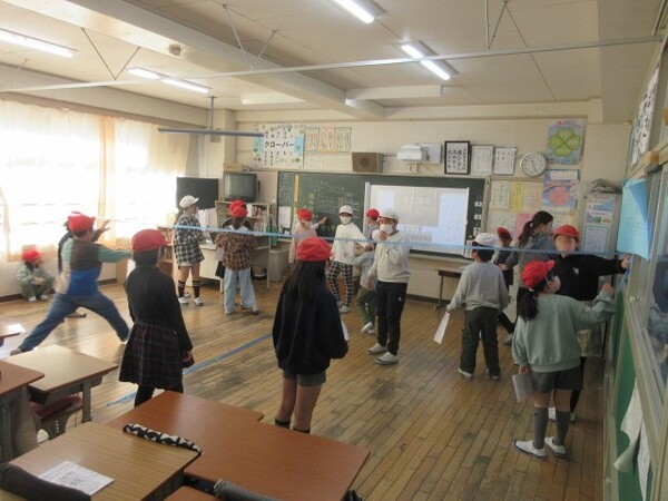 異学年が楽しい遊びで交流しました。みんな声が大きい。。。
