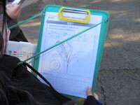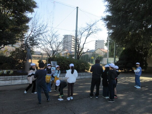 冬の様子を観察しています。落ち葉のなくなった枝には、既につぼみがあることに気付いたようです。