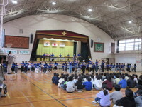 音楽朝会でマーチングバンドが発表してくれました。目の前で見た3年生の中には、4月から入りたい!と言ってる子もいました♪