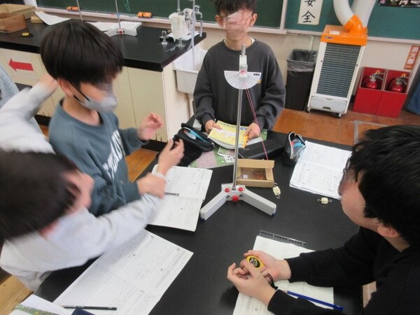 おもりを支える子、時間を計る子、記録する子、、、分担しながらスムーズな実験ができました。