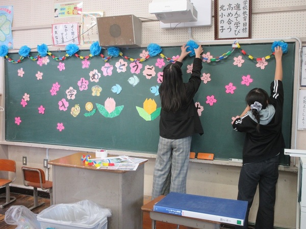 教室移動の机や椅子を運んだり、新1年生を迎えるにあたり装飾を行い教室を華やかにしてくれたり、掃除をしてくれたり・・・。学校のために大活躍だった6年生のおかげで、新学期を迎えることができます。
